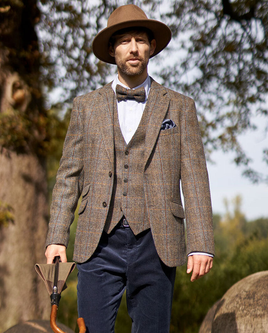 Erleben Sie den begehrten, original Harris Tweed® Stoff, der Sie warm hält, wenn es kühl ist, aber Sie nicht schwitzen lässt, wenn die Sonne scheint. Ein absoluter Klassiker in der Englischen Mode für Business und Freizeit: das Harris Tweed® Sakko.