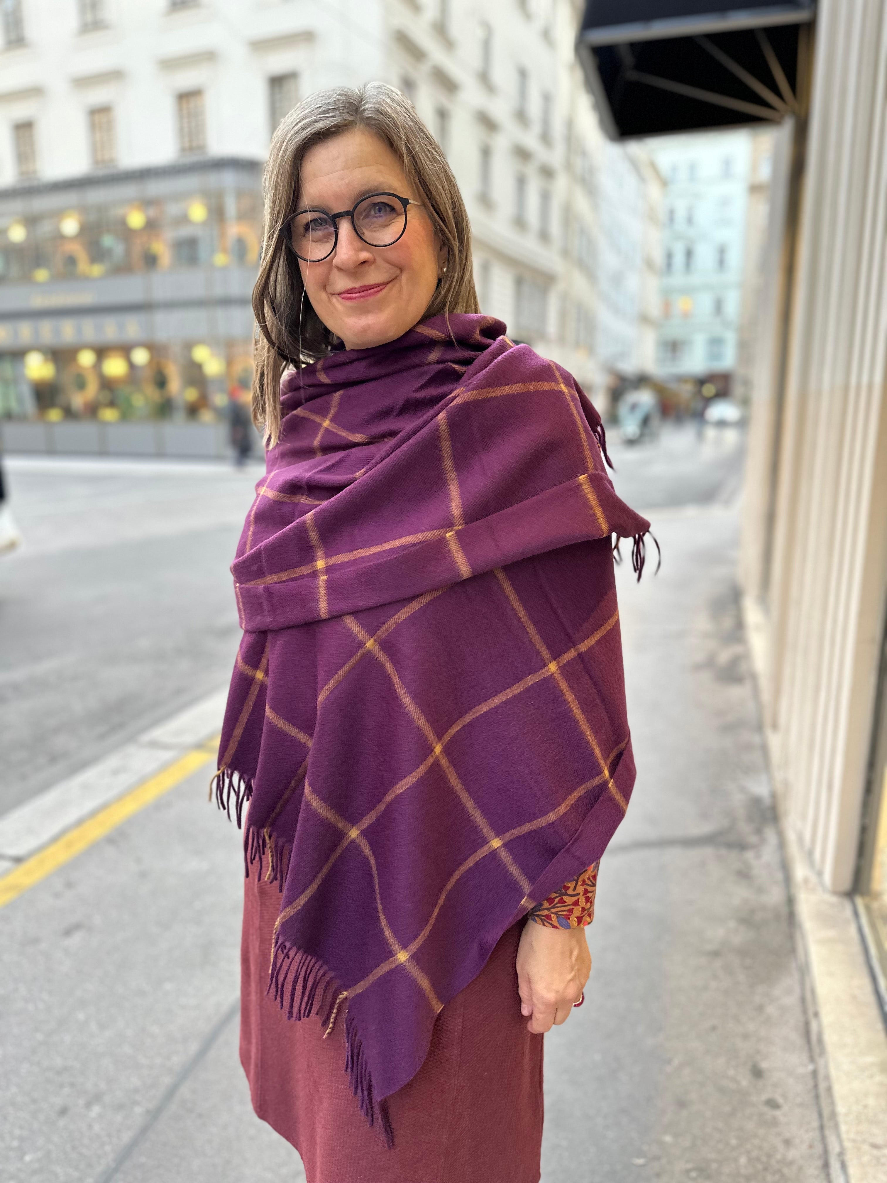 Warum haben wir Kaschmir gewählt? Im House of Scotland dreht sich ja alles um Wolle. Kaschmir hat den Vorteil, dass es eine sehr weiche und leichte Faser ist, ideal also um direkt auf der Haut getragen zu werden. Die Werkstätte, von der wir die exklusiven Schals beziehen dürfen, verwendet einen weltweit einzigartigen Prozess, den sog. Ripple Effekt: