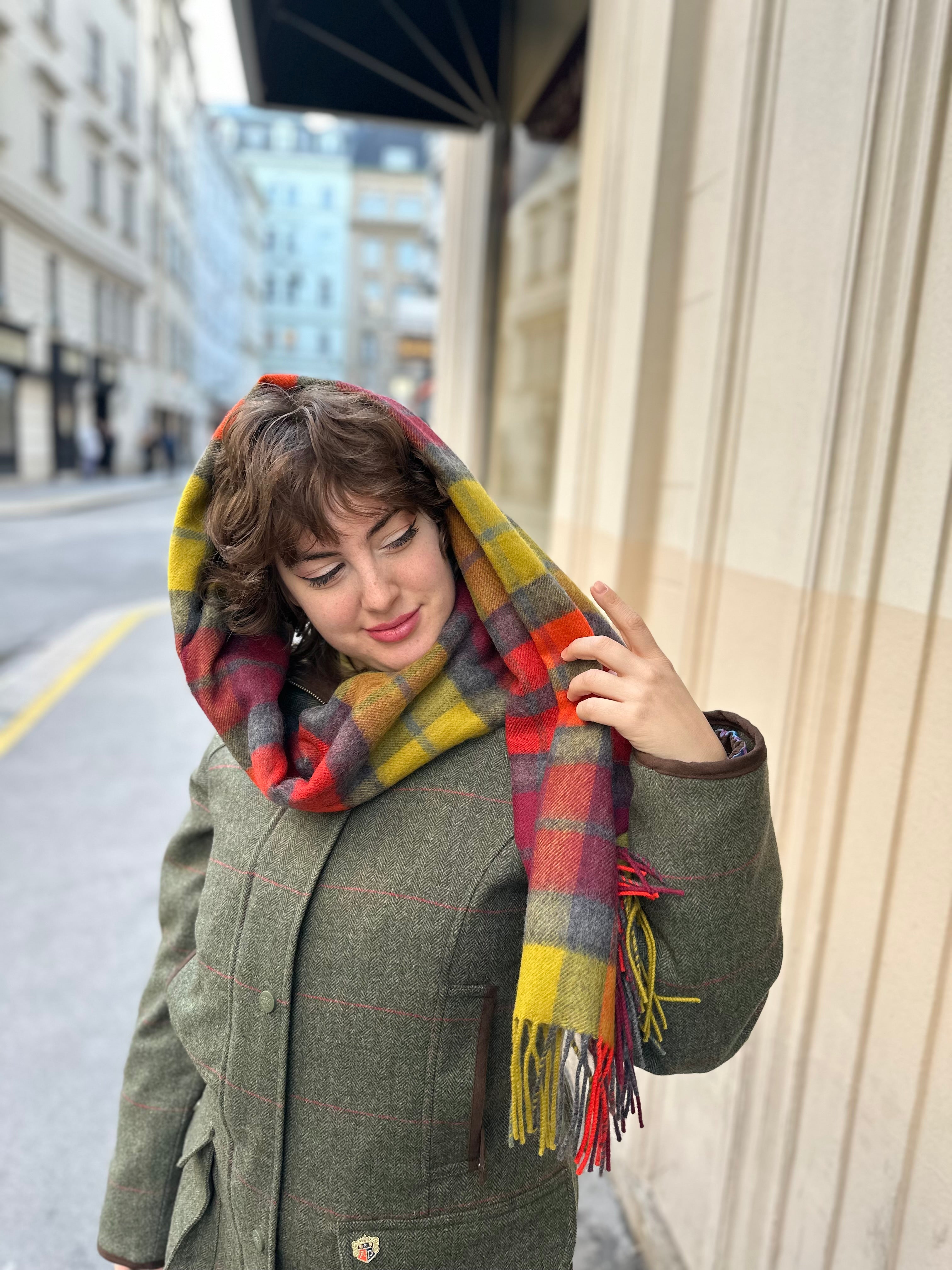 In einer Traditionsweberei in Schottland aus 100% Lammwolle gewebte, wunderschöne Stola mit klassisch, zeitlosen Muster, die Sie in jeder Jahreszeit entweder leger über die Schulter, als Schal oder als Überwurf tragen können. Das natürliche Material Wolle hält wie kein anderes Material warm und ist dabei weich und kuschelig.