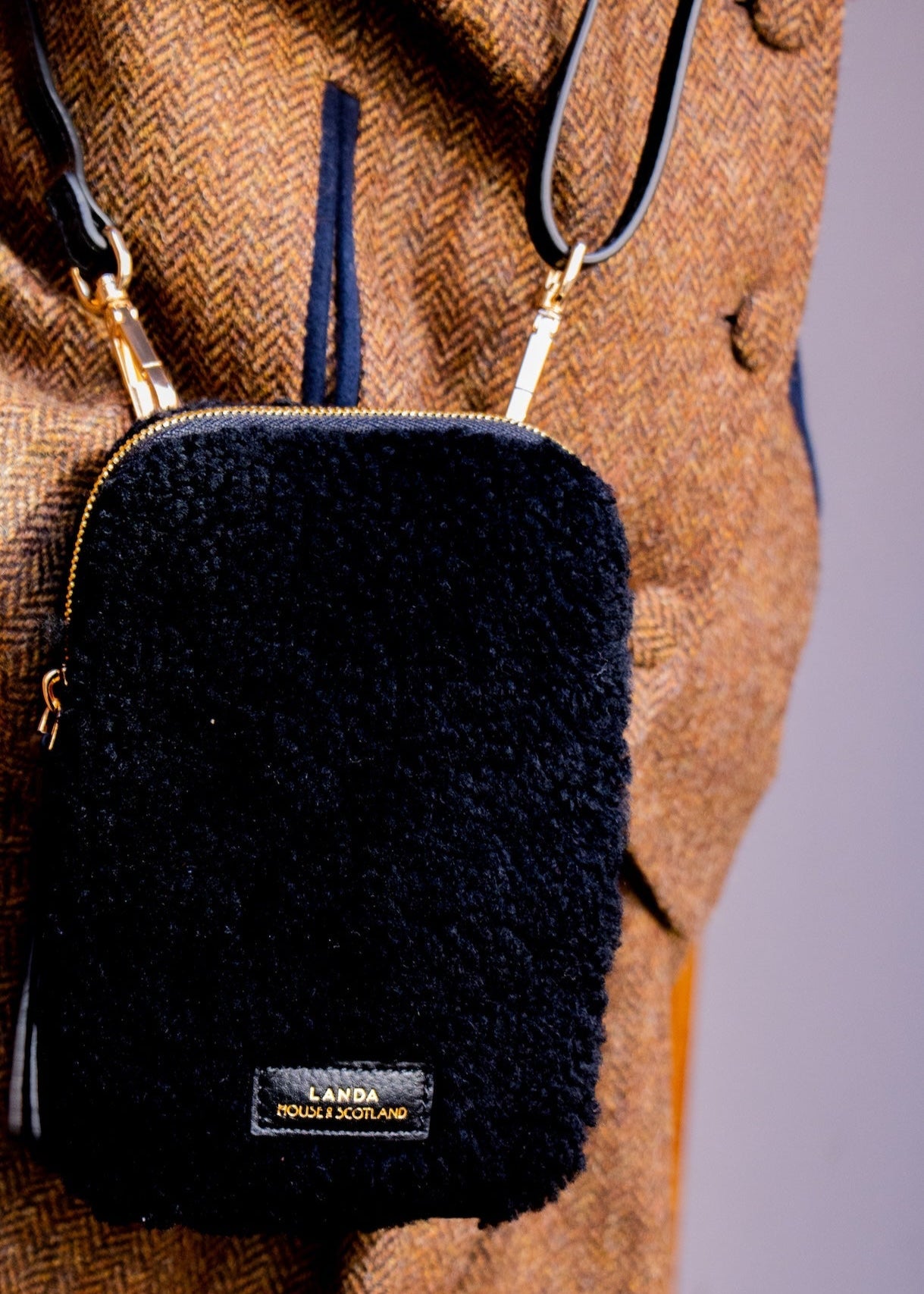 Umhängetasche original Schaffell ungefärbt (schwarzes Schaf)